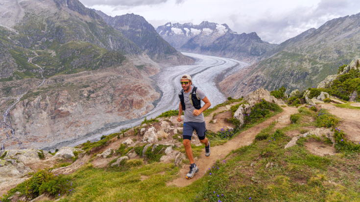 Runners start at nearly 2,000 meters above sea level and climb even higher, but the burning in your legs is completely forgotten the moment you look up. The route offers sweeping, panoramic views of the colossal Great Aletsch Glacier and the towering 4,000-meter peaks of the Valais region.