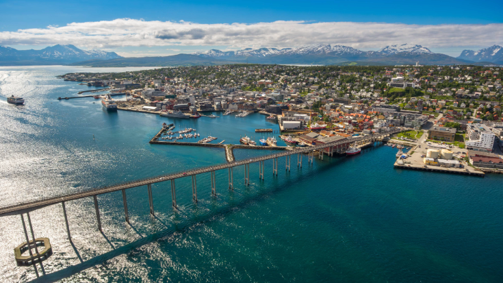The route takes runners across the impressive Tromsø Bridge, offering unobstructed views of dramatic, snow-capped mountains and crystal-clear Norwegian fjords.